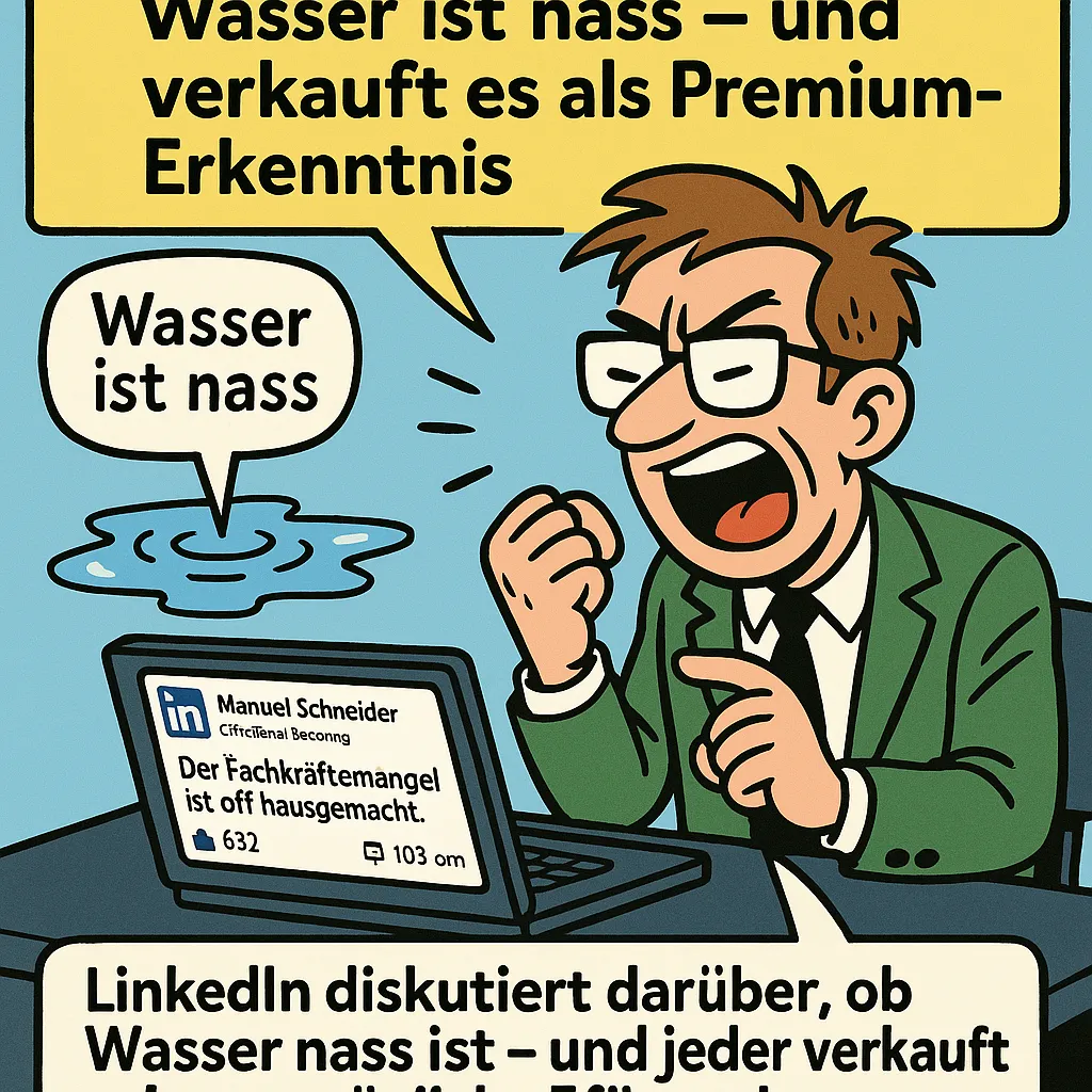LinkedIn ist halt das einzige Biotop, wo gesunder Menschenverstand als „Premium-Erkenntnis“ mit 17 Hashtags verwertet wird und das Offensichtliche so lange aufbläht wird, bis man glaubt, man hätte gerade ein McKinsey-Whitepaper gelesen.
