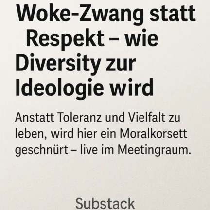 Wie Diversity-Agenturen unsere Arbeitswelt ideologisch vergiften Wer hier nicht mitmacht, wird nicht als „anderer Meinung“ akzeptiert, sondern als Gefahr markiert. Das ist keine Toleranz –…